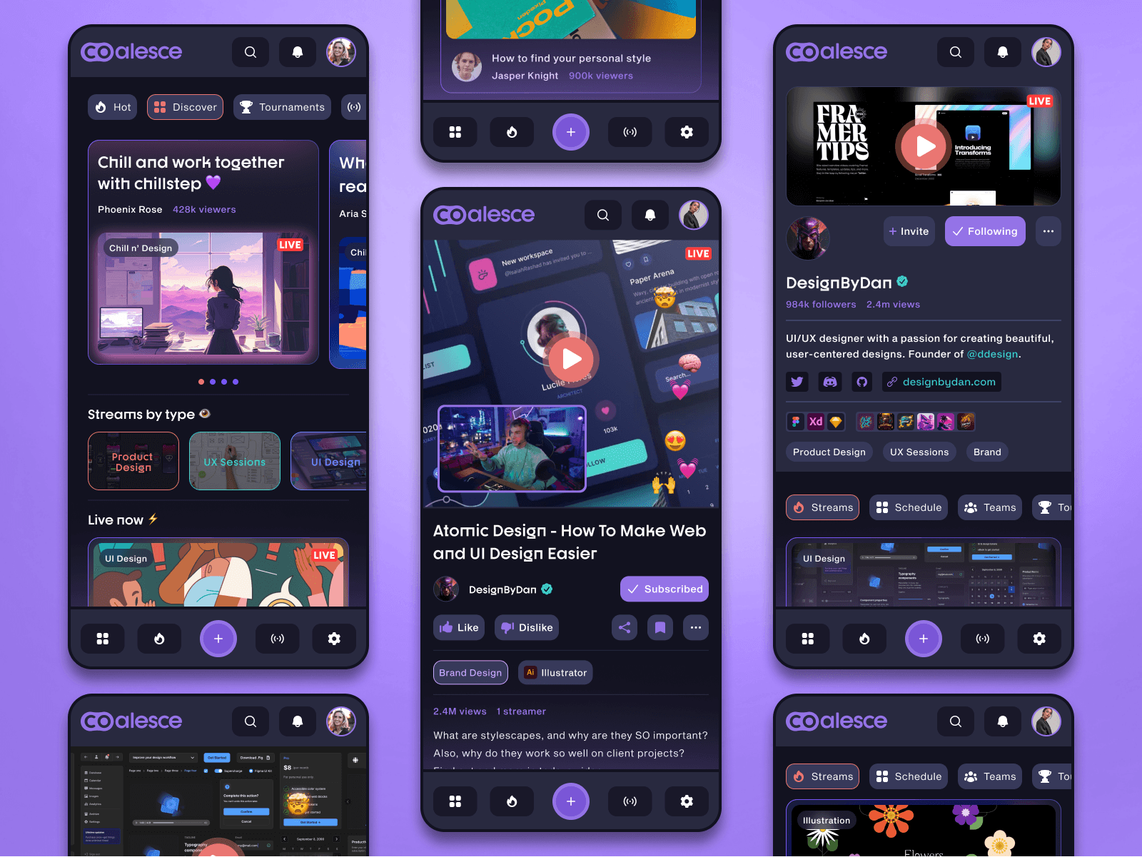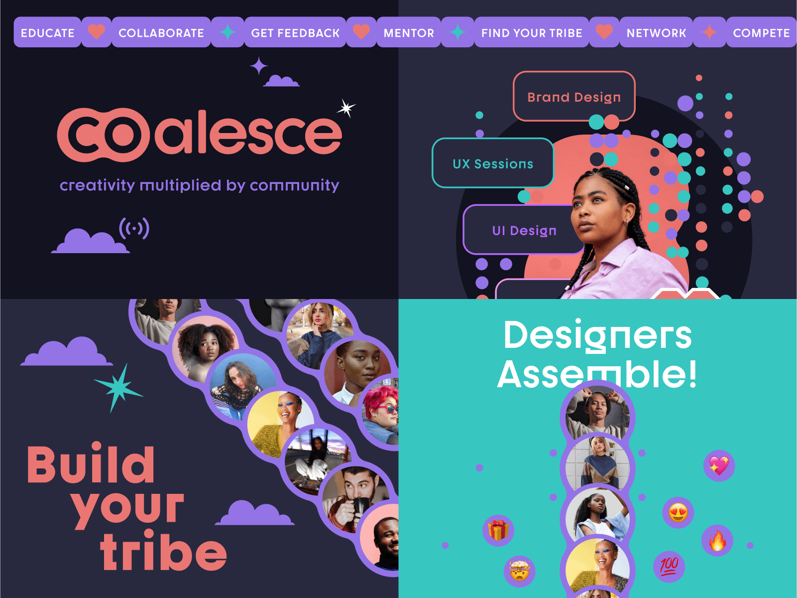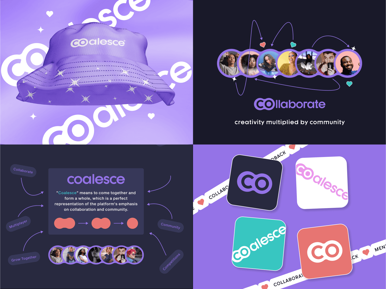 ✨Coalesce✨ is a streaming platform specifically for artists and designers to share their creative process with their community. The idea puts a lot of emphasis on collaboration and teaching. These slides show the branding exploration. Tried to create a soft and welcoming vibe.