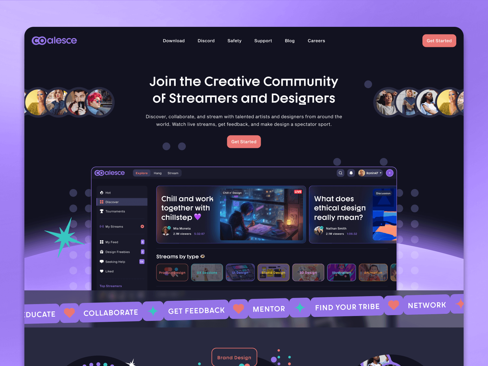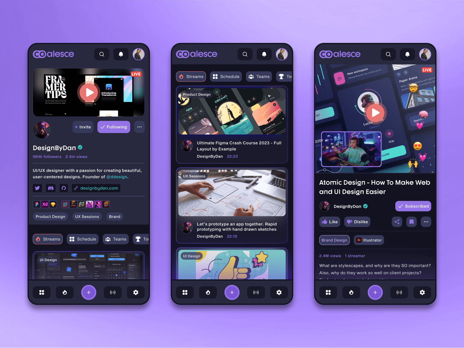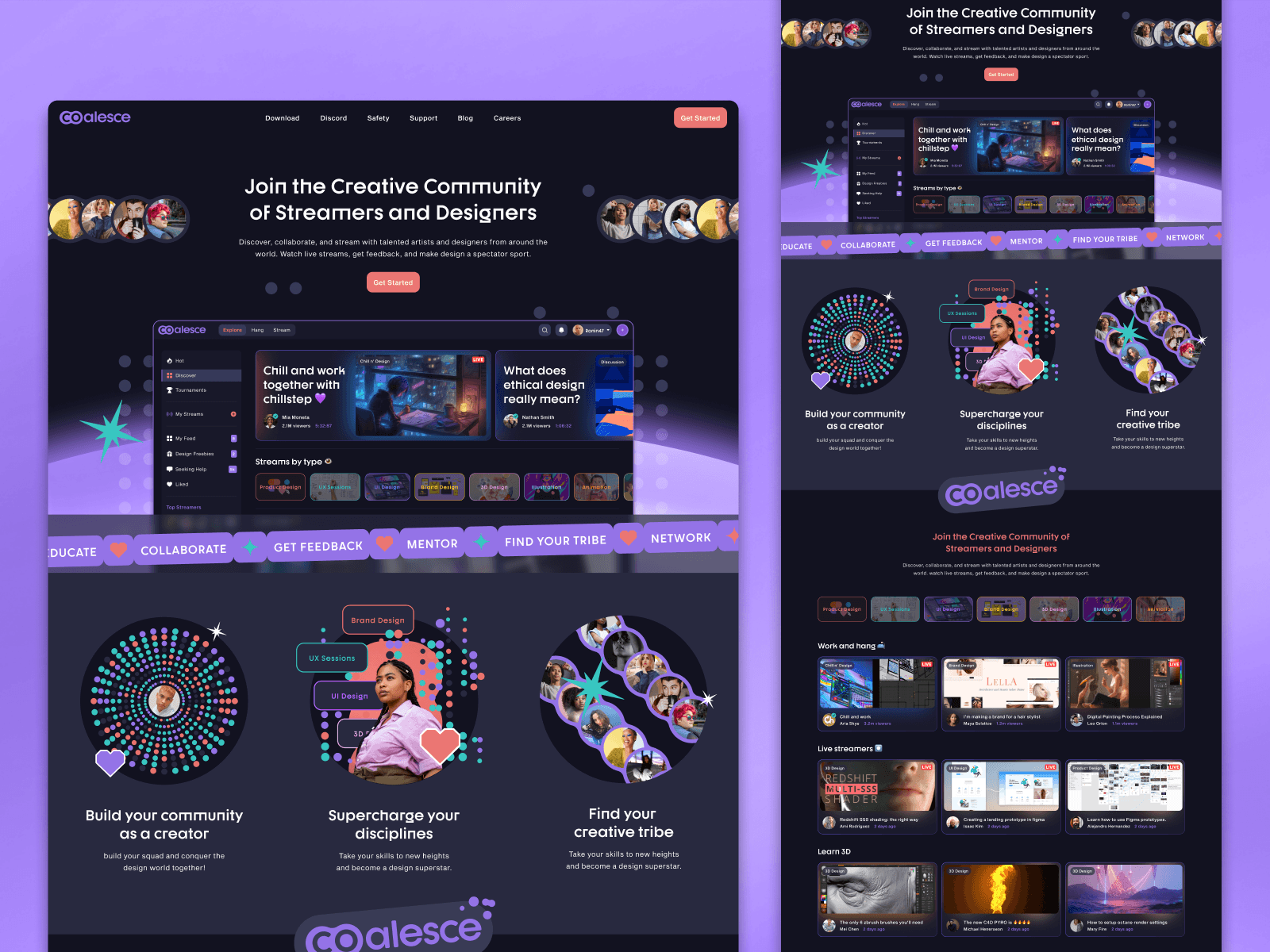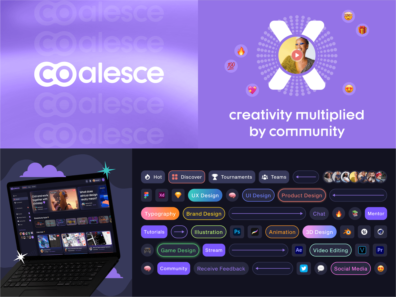 ✨Coalesce✨ is a streaming platform specifically for artists and designers to share their creative process with their community. The idea puts a lot of emphasis on collaboration and teaching. These slides show the branding exploration. Tried to create a soft and welcoming vibe.