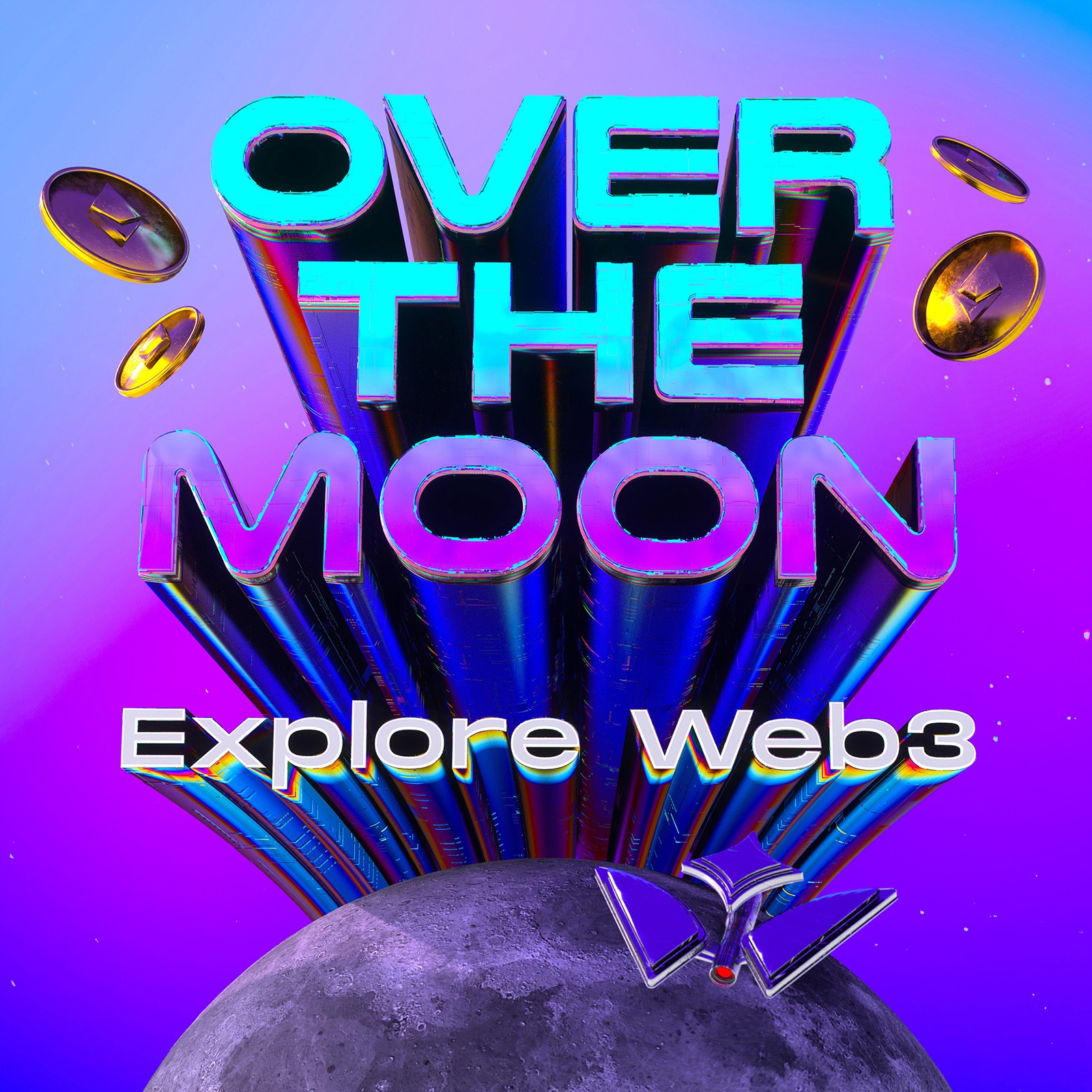 Over the moon podcast branding. The podcast explores web3.